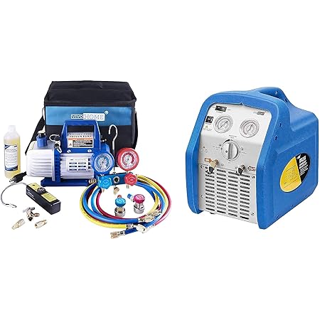 Amazon Com Vivohome 110v 1 3 Hp 4cfm Single Stage Rotary Vane Air Vacuum Pump And R134a Ac Manifold Gauge Set Kit With 110 120v Ac 60hz 3 4hp Single Cylinder Portable Refrigerant Recovery Machine Combo